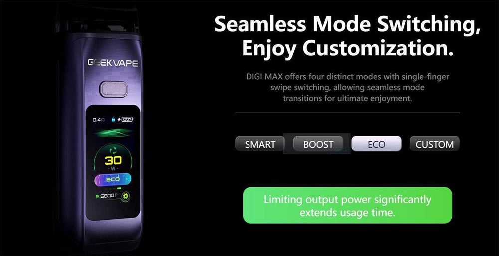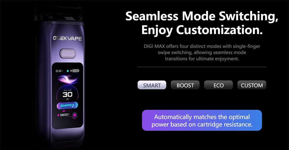 The Digi Max Pod Vape Kit comes equipped with a robust 3000mAh built-in battery, providing long-lasting power to keep you vaping throughout the day. With a maximum output of 80W,