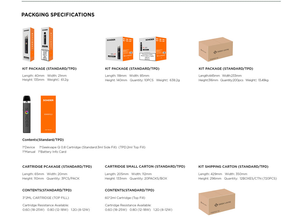 The Geekvape Sonder Q2 vape kit is a powerful device and friendly for the beginner. Its powered by a built-in 1350mAh battery which will last at least a full day, And with 30W max output every flavour and puff will be impactful and rich, just the way you like it. it can be fully recharged in under two hours. compatibility with the Geekvape Q Cartridges top filling,this kit can support both MTL (Mouth To Lung) and RDTL (Restricted Direct To Lung) vape styles.
