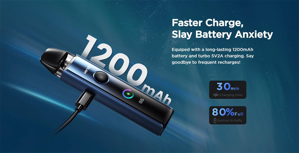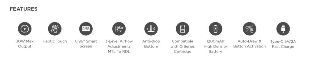 The built-in 1200mAh high-capacity battery supports 5V/2A fast charging, significantly improving convenience and longevity.It is compatible with Q Series Pod Cartridge.