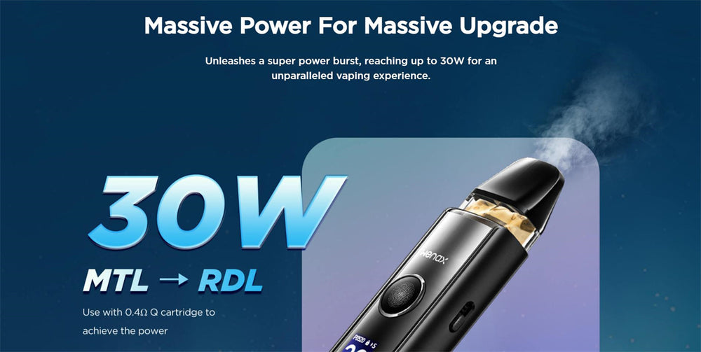 Geekvape Wenax Q Pro excels in performance with a 0.4-ohm coil that supports up to 30W of power and three adjustable airflow levels, catering to both MTL and DTL vaping preferences.