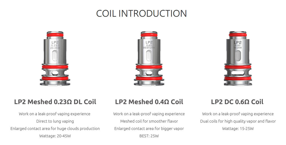 SMOK LP2 Replacement Coils is specially design for SMOK RPM 4 Kit. It is an upgraded version of LP1 series coils, retaining the leak-proof structure and optimizing the internal heating elements. The SMOK LP2 coils have been designed for flavor, vapor, and an all-around fantastic vaping experience.5pcs per pack.