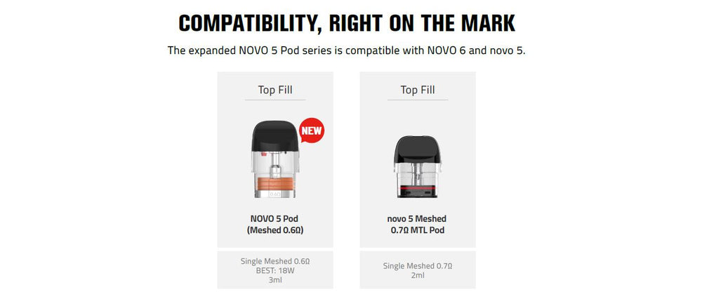 5. Leak-resistant NOVO 5 Pods with upgraded oil absorption and sealing.
