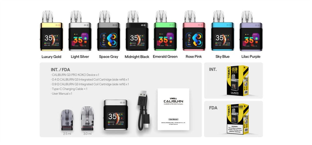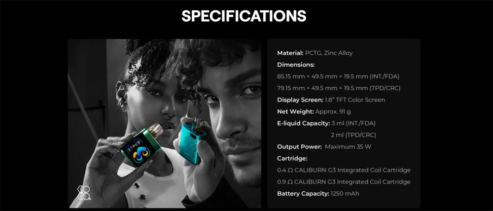 Designed to meet the demands of top performance seekers, it boasts a monster 1.8inch TFT display for a stunning Visual experience,a pro battery of 1250 mah that stands out among its peers, and unlimited customizability to let you define your own vaping modes. Featuring a 3ml-0.4ohm cartridge and a maximum output of 35W , the CALIBURN G3 PRO KOKO gives you a robust RDL vape experience. With a metallic finish that exudes luxury and 8 tasteful colors to express your individuality, you can join the KOKO family in style!