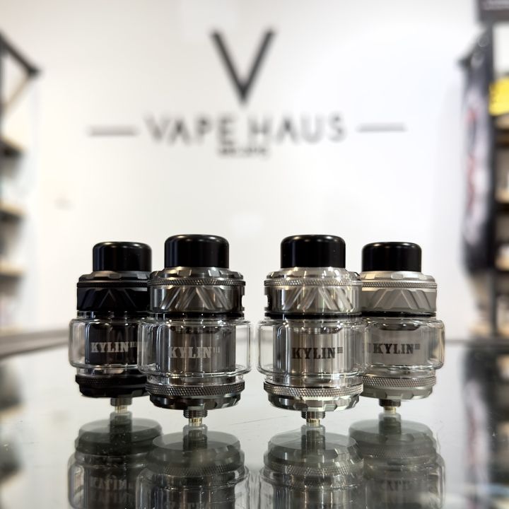 the Vandy Vape Kylin V3 RTA with 6mL juice capacity, single or dual coil builds, top-located honeycomb airflow, easy top fills, and massive vapor production.Adjustable airflow is located at the top of this RTA to be leakproof and produce massive vapor. Several honeycomb holes in the deck ensure maximum vapor production from a single or dual coil build.