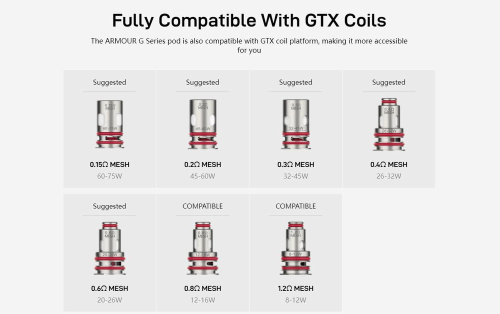 The ARMOUR G pod features top airflow system with 4 levels precise airflow adjustment, reducing the leakage while providing customized experience,Top Filling, Easy Operating ,can hold 5ml ejuice capacity,Along with the SSS Leak Resistant Tech, we applied the new structure in the bottom to better lock the condensation inside and significantly reduce the leakage.Fully Compatible With GTX Series Coils.each pack has 2pcs.