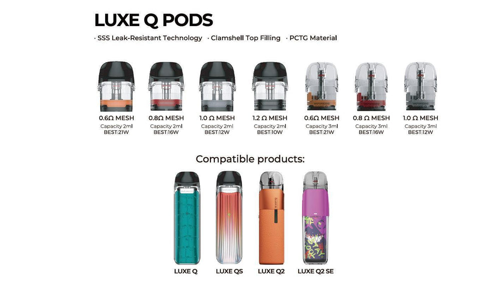 The Vaporesso LUXE Q Cartridge comes with the latest SSS leak-resistant technology that allows for a quality vaping experience.