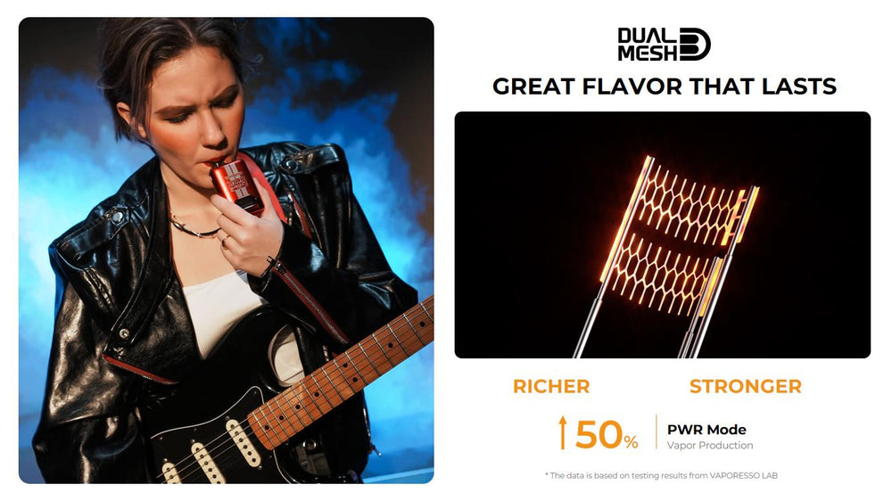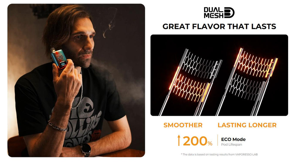 It is equipped with the latest VAPORESSO Dual Mesh technology, which enhances the flavor and lifespan of the pods while ensuring safety and reliability. Paired with the Axon Chip, the device offers a smarter, simpler experience with ECO/PWR dual mode switching, providing a unique experience. Its design is youthful and diverse, making it a great fashion accessory as well.