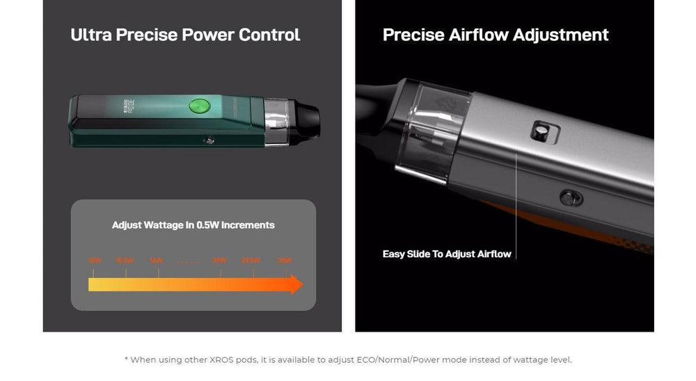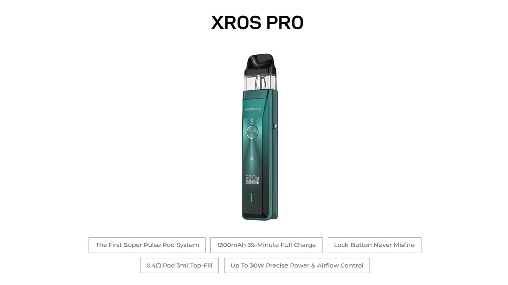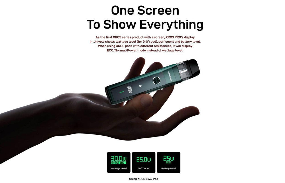 Compared with the other Xros Series products, the PRO adds a OLED screen, and Slide-locking firing functions. and also full compatible with the xros series cartridge.