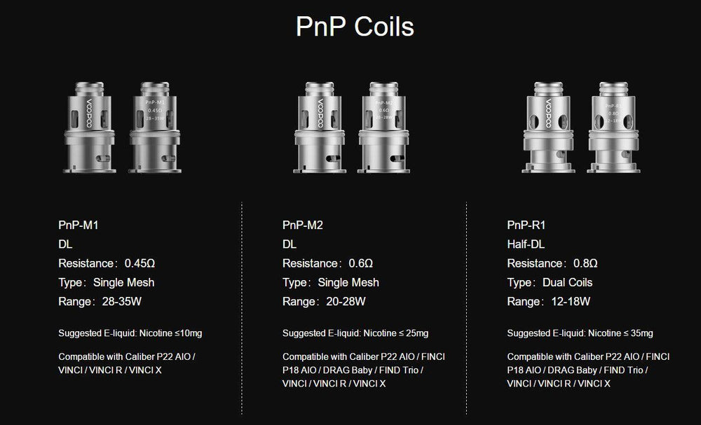 Coil Resistance: PnP-M2 0.6ohm / PnP-R1 0.8ohm /PnP-C1 1.2ohm