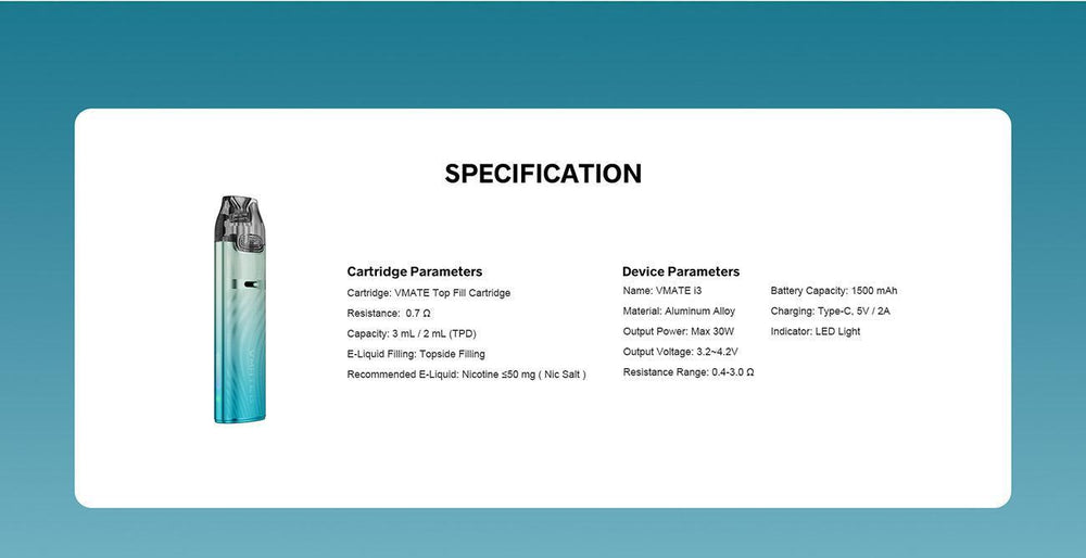 5. Compatible with Vmate Pod Family (Top Fill & V2)(0.4ohm / 0.7ohm / 1.0ohm / 1.2ohm)